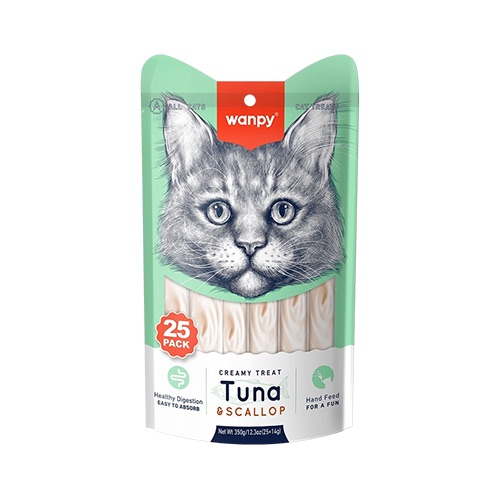 Wanpy Ton Balıklı Deniz Taraklı Sıvı Kedi Ödül Maması 25 x 14 g
